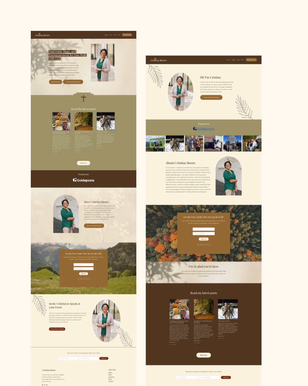 Cristina walked away with more than a website. She walked away with a platform. One that positions her as the credible, established speaker she already is. One that tells the story of her writing journey in a way that earns trust from publishers before she ever sends a query letter. One that gives her readers a warm, inviting home to return to and a reason to stay connected. One that represents her with the kind of polish that communicates, quietly and confidently, that she is ready for what is next. For Cristina, this wasn't just a design project. It was an act of stewardship over the calling God placed on her life. She is a woman with a message worth carrying far, and now she has a platform built to carry it. I don't take lightly what it means to build something like that for someone. Every website I design is someone's dream made digital. And getting to be part of Cristina's story, helping her take up the space she was always meant to occupy, is exactly why I do this work.
